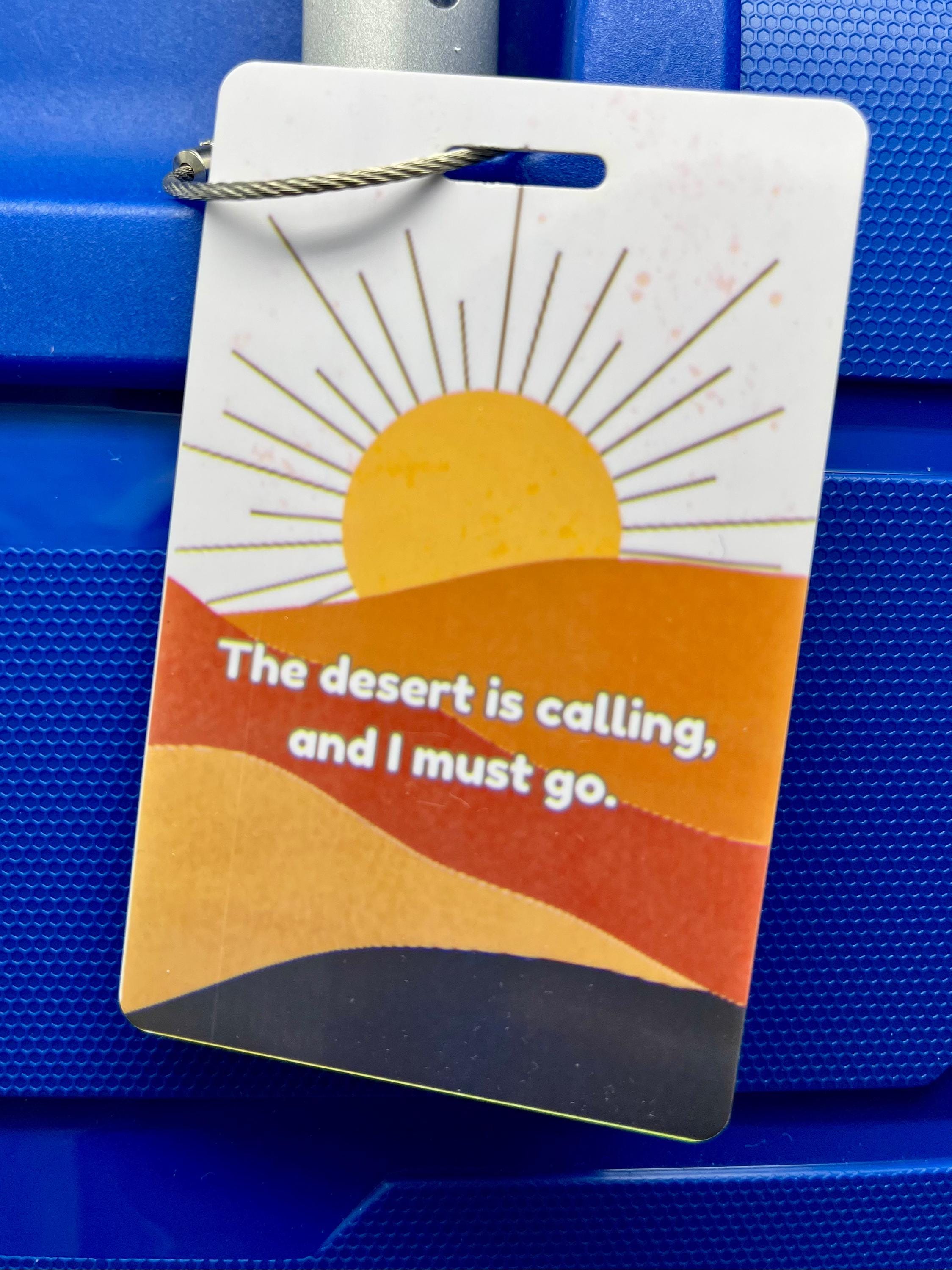 Desert lovers, this tag's for you! Attach it to a backpack, golf bag, or suitcase (all 3?) depending on what sort of trip you're taking, and ensure your bags remain with their rightful owner.