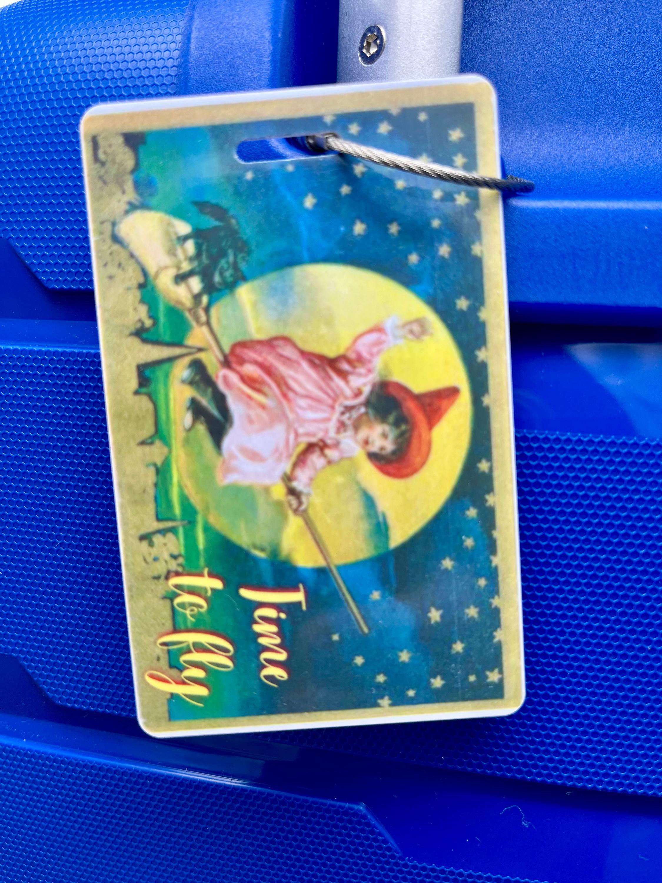 Are you a little witchy? The vintage artwork on this luggage tag comes from an old Halloween greeting card. Make your luggage stand out when you travel, while also making it more secure with this super sweet, one-of-a-kind ID tag.